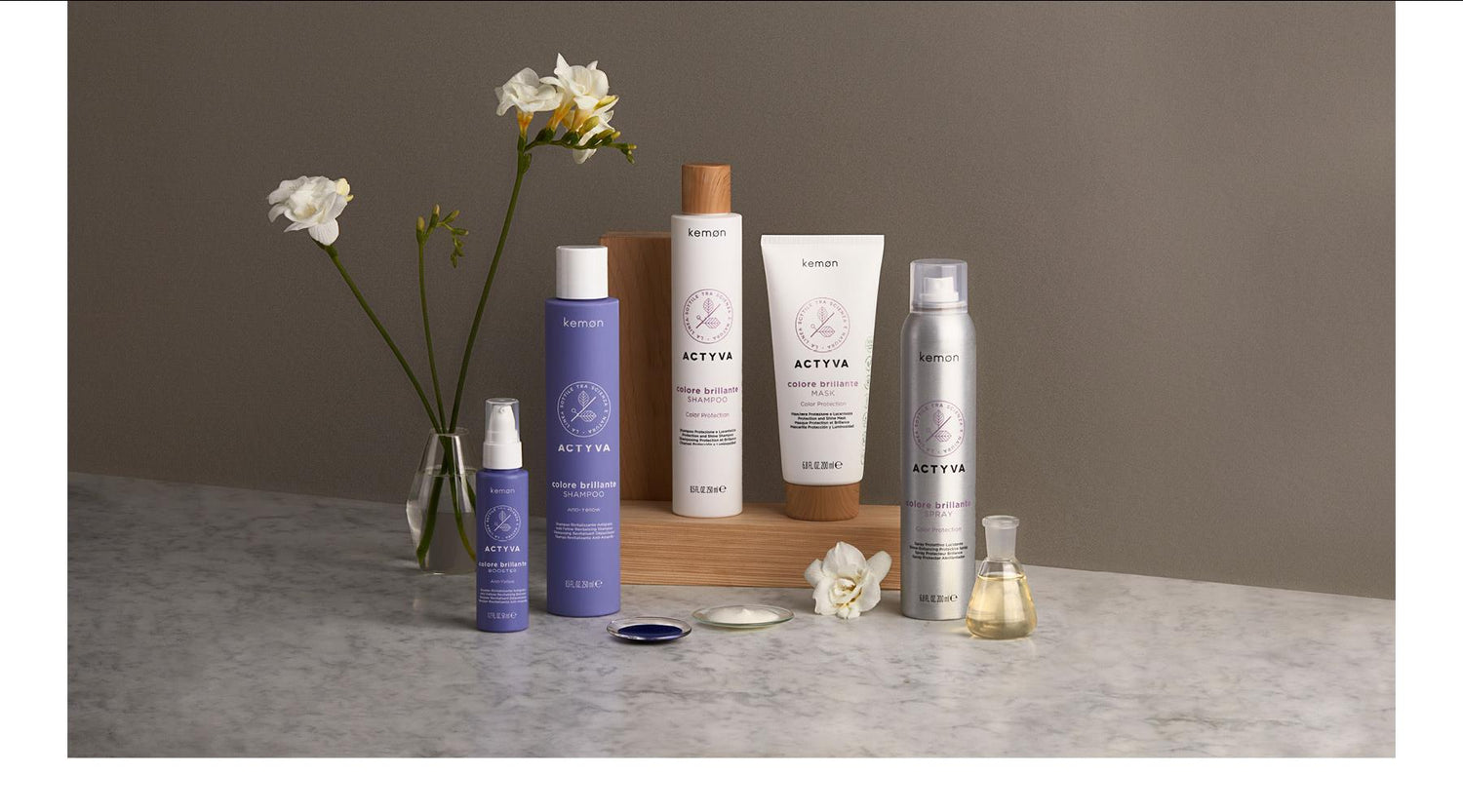 Kemon’s Research and Development laboratories bring ACTYVA COLORE BRILLANTE, the enhanced line of products specifically created to give colour-treated hair intensity, shine and long-lasting colour, wash after wash.